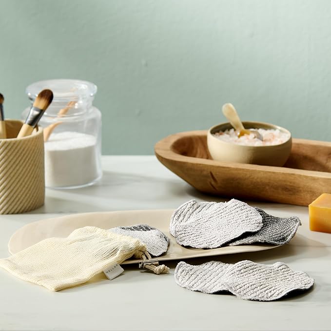 Wellbe Reusable Face Pads 7 Pc, Washable Charcoal Cotton Rounds, White