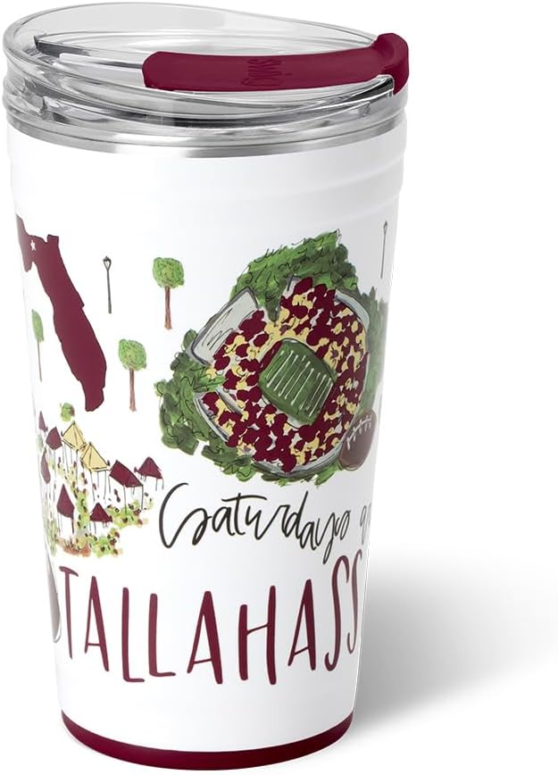 Swig Life 24oz Party Cup, Stackable Insulated Travel Coffee Tumbler with EZ Slider Lid, Cup Holder Friendly, Stainless Steel 24 oz Tumbler, Reusable Mug (Saturdays In Tallahassee)