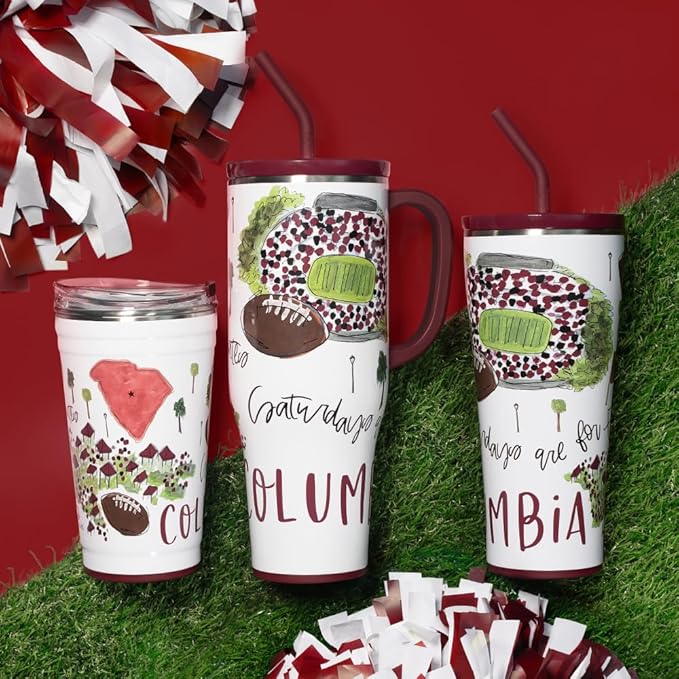 Swig Life 32oz Straw Tumbler, Travel Coffee Tumbler with Lid, Cup Holder Friendly Travel Coffee Mug, Stainless Steel, 32 oz Reusable Insulated Coffee Mug (Saturdays In Columbia SC)