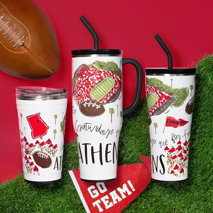 Swig Life 32oz Straw Tumbler, Travel Coffee Tumbler with Lid, Cup Holder Friendly Travel Coffee Mug, Stainless Steel, 32 oz Reusable Insulated Coffee Mug (Saturdays In Athens)