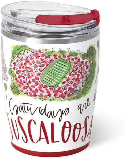 Swig Life 12oz Insulated Tumbler, Travel Coffee Tumbler with Lid, Cup Holder Friendly Travel Coffee Mug, Stainless Steel, 12 oz Reusable Insulated Coffee Mug (Saturdays in Tuscaloosa)