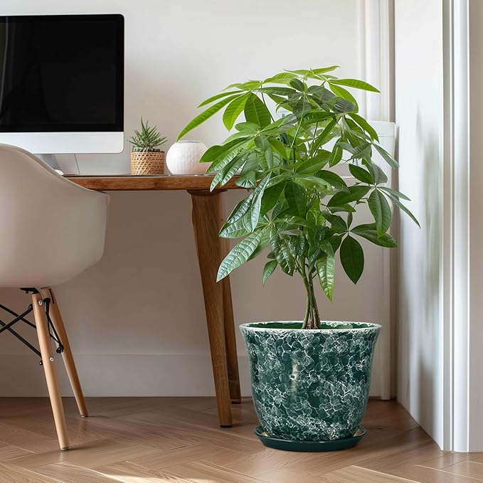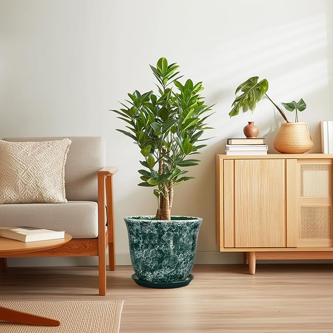 - Ideal Size: These ceramic pots for plants measure 12.4" x 12.4" x 10.3" and comes with drainage holes, a ceramic plant saucer, a drainage net, creating a healthier environment for plants while keeping your space neat and clean