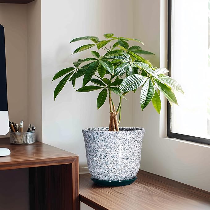 - Ideal Size: This ceramics pots for plants measures 8.0" x 8.0" x 6.9" and comes with drainage holes, a plant tray, a drainage net, creating a healthier environment for plants while keeping your space neat and clean