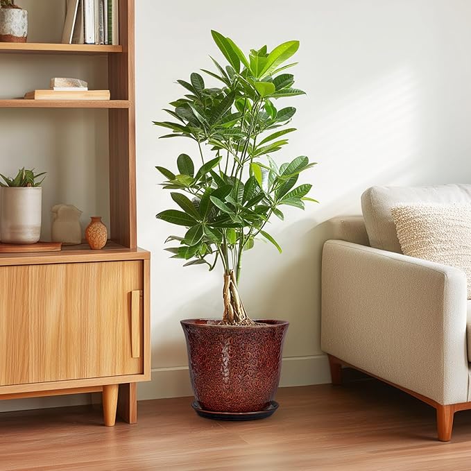 - Ideal Size: These ceramic pots for plants measure 10.0" x 10.0" x 8.5" and comes with drainage holes, a plant saucer, a drainage net, creating a healthier environment for plants while keeping your space neat and clean