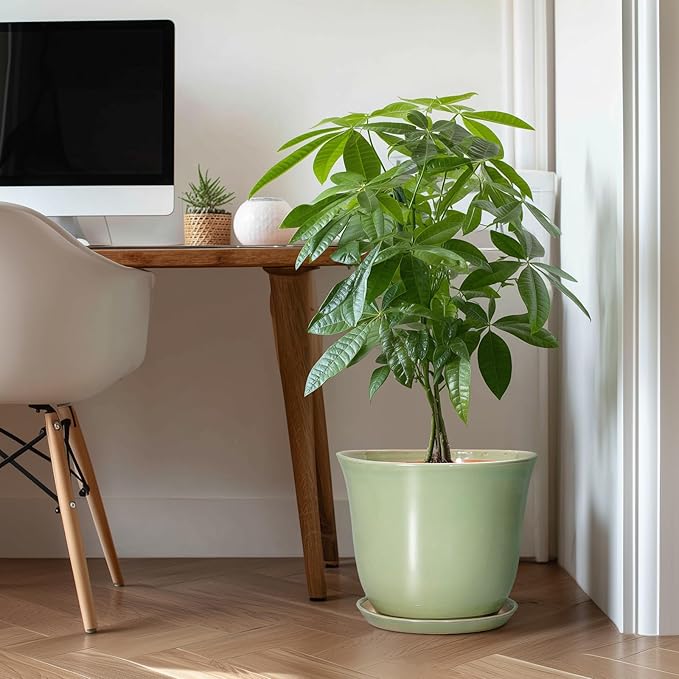 - Ideal Size: These ceramic pots for plants measure 12.4" x 12.4" x 10.3" and comes with drainage holes, a ceramic plant saucer, a drainage net, creating a healthier environment for plants while keeping your space neat and clean