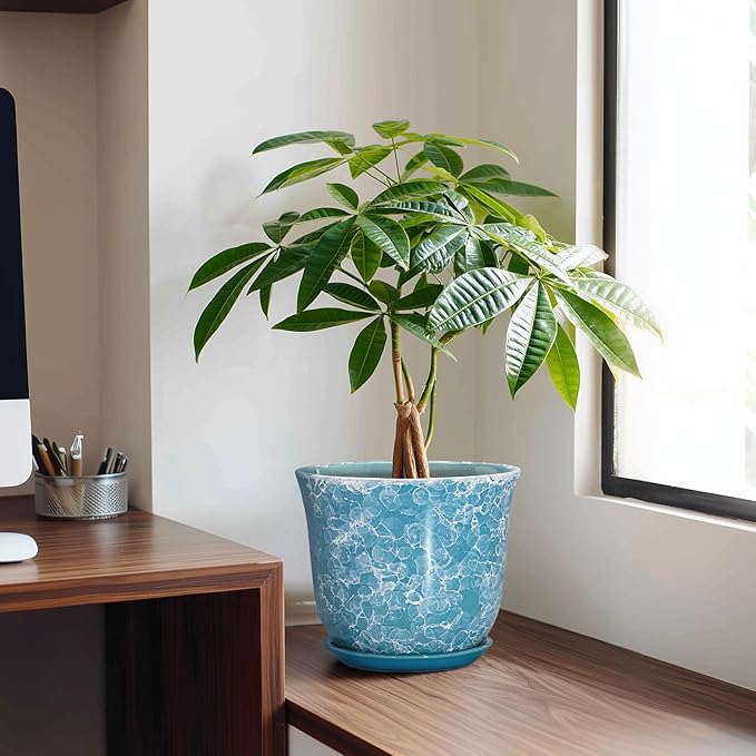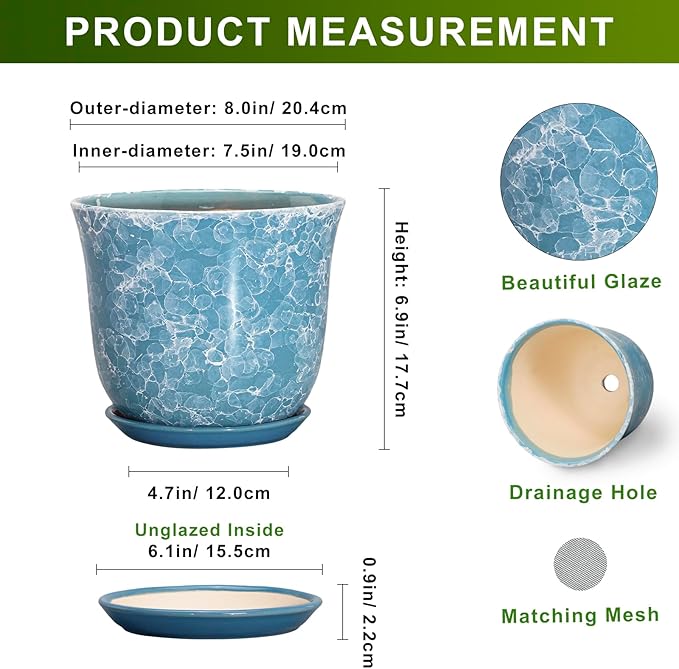 - Ideal Size: This ceramics pots for plants measures 8.0" x 8.0" x 6.9" and comes with drainage holes, a plant tray, a drainage net, creating a healthier environment for plants while keeping your space neat and clean