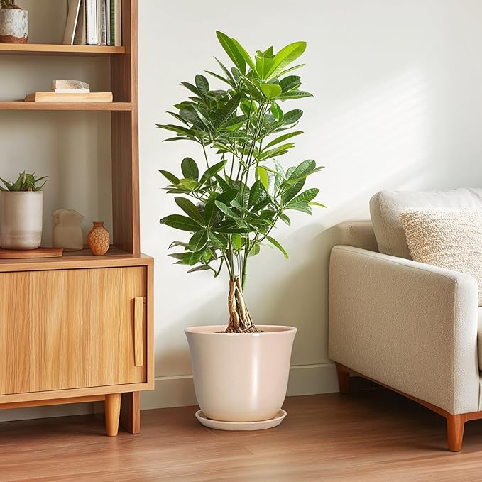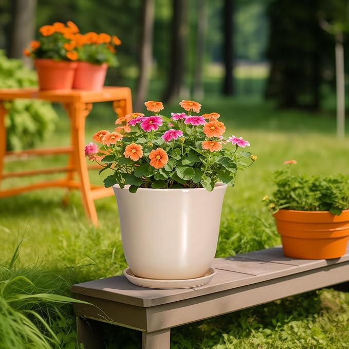 - Ideal Size: These ceramic plant pots measure 10.0" x 10.0" x 8.5" and comes with drainage holes, a plant saucer, a drainage net, creating a healthier environment for plants while keeping your space neat and clean