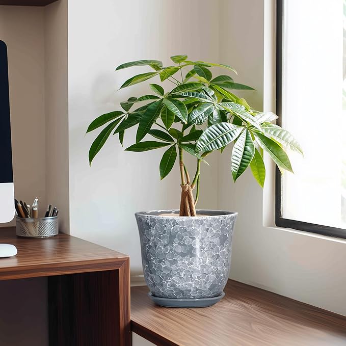 - Ideal Size: This ceramics pots for plants measures 8.0" x 8.0" x 6.9" and comes with drainage holes, a plant tray, a drainage net, creating a healthier environment for plants while keeping your space neat and clean