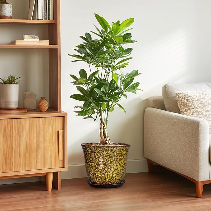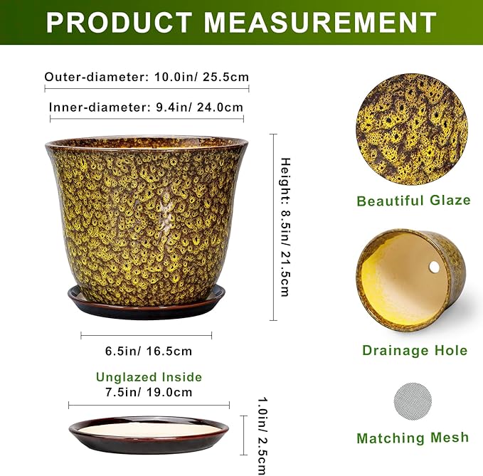 - Ideal Size: Thes ceramic pots for plants measure 10.0" x 10.0" x 8.5" and comes with drainage holes, a plant saucer, a drainage net, creating a healthier environment for plants while keeping your space neat and clean
