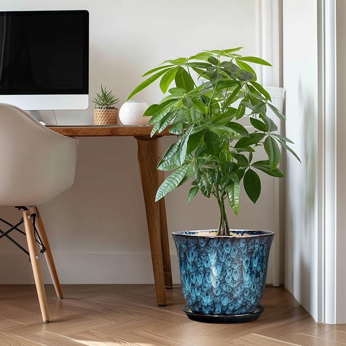 - Ideal Size: These ceramic pots for plants measure 12.4" x 12.4" x 10.3" and comes with drainage holes, a ceramic plant saucer, a drainage net, creating a healthier environment for plants while keeping your space neat and clean