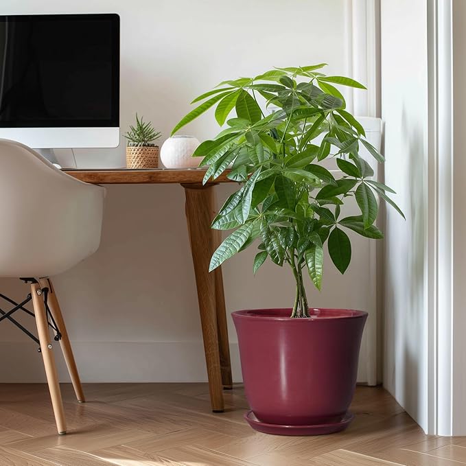 - Ideal Size: These ceramic pots for plants measure 12.4" x 12.4" x 10.3" and comes with drainage holes, a ceramic plant saucer, a drainage net, creating a healthier environment for plants while keeping your space neat and clean