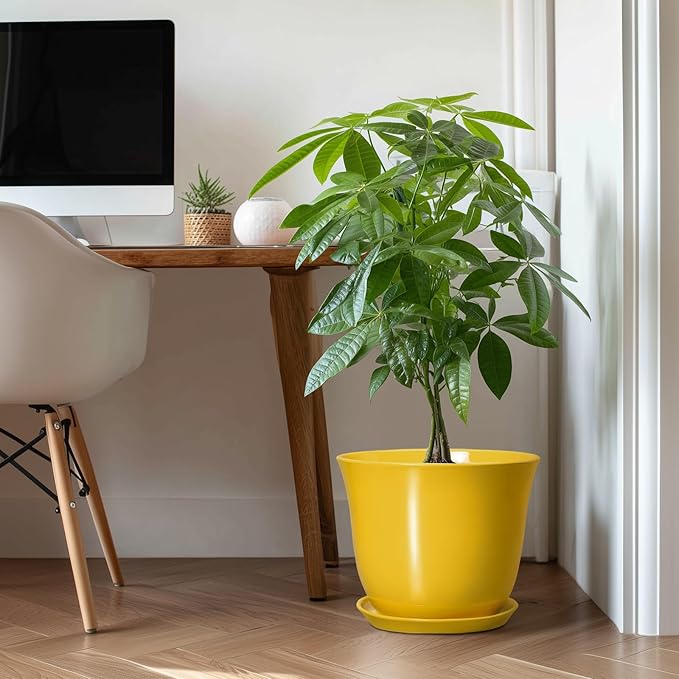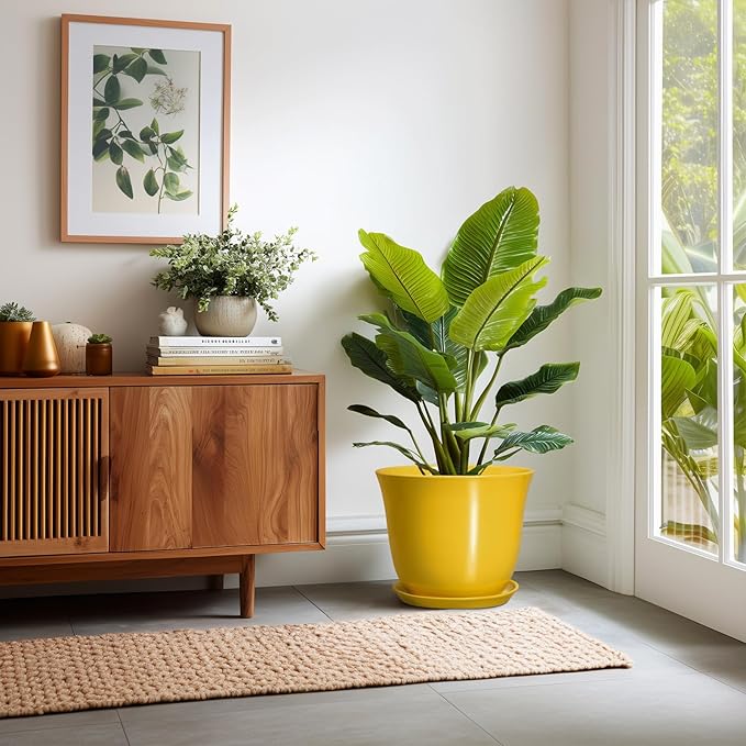 12 Inch Plant Pot - Ceramic Plant Pots with Drainage Hole and Saucer, Large Round Planter for Indoor Outdoor, Modern Flower Pot, Decorative Planters, Home Garden Decor, Garden Gifts, Yellow