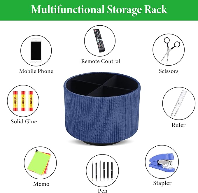 - ✎360° Revolving Design: You can freely rotate the pen holder steadily left and right,unique spinning base design allows easy access to items from any directions.The non-slip pads on the bottom keep it stay in place when rotating.
