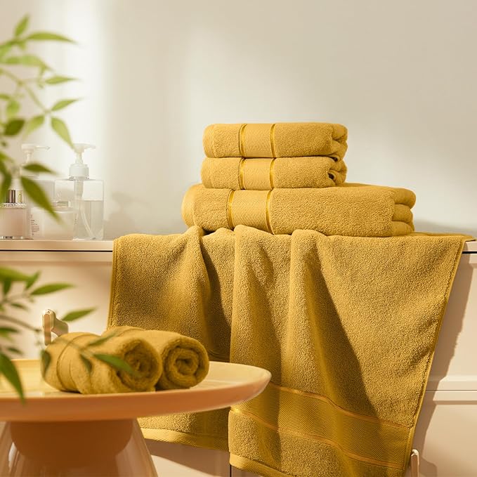 Marvione Bath Towels Set 6 Piece, 100% Turkish Cotton Highly Absorbent and Soft Towels for Bathroom 2 Bath Towels 2 Hand Towels 2 Washcloths, Gold