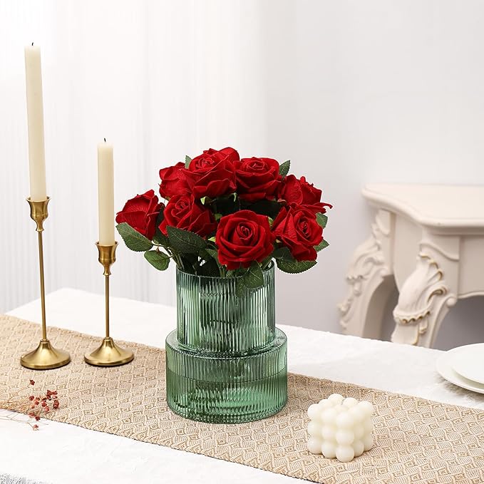 - Vase for Decor: YANWE1 Ribbed Vase is perfect for displaying your flower bouquets. This glass vase adds a touch of elegance and simplicity to your flower. Beautiful decoration for living room, dining room table, entryway, desk, shelf, coffee table, fireplace and porch.(专利产品)