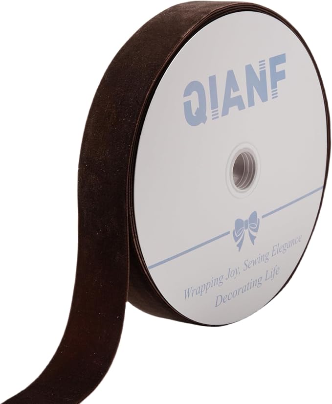 Vintage Brown Velvet Ribbon Chocolate Christmas Ribbon for Gift Wrapping Crafts Christmas Tree Ornaments Garland Decorations, 1-1/2 Inch X 25Yd