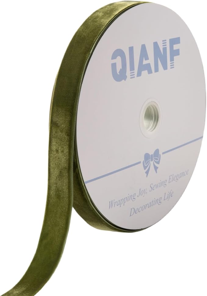 Vintage Moss Green Velvet Ribbon Christmas Ribbon for Gift Wrapping Crafts Christmas Tree Ornaments Garland Decorations, 1 Inch X 25Yd