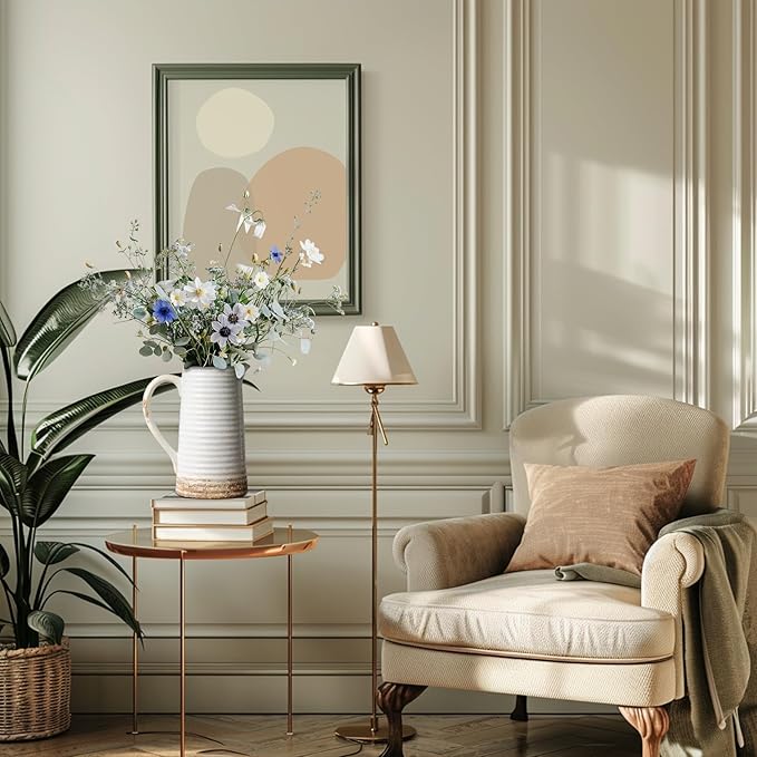 - 【Distressed Finish】Crafted with retro and distressed surface, this ceramic pitcher style vase features a charming rustic design. The sturdy handle makes it easy to move and refill, allowing for effortless flower changes. Its timeless aesthetic enhances your interior decor, effortlessly showcasing your refined taste and artistic elegance.