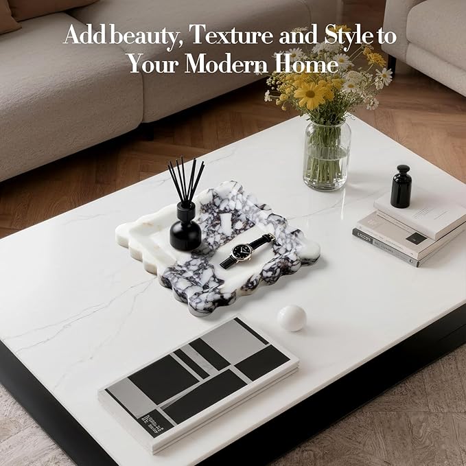 - 【100% Natural Marble】The decor tray is made of high-quality natural marble with a unique marble pattern, making each tray unique. The polished surface and scalloped edges add a luxurious feel, making it a stylish focal point in your home decor.