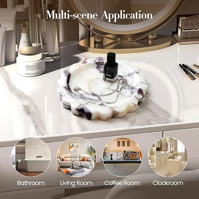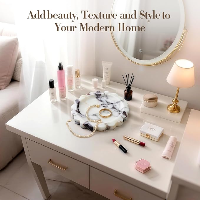 - 【100% Natural Marble】The decor tray is made of high-quality natural marble with a unique marble pattern, making each tray unique. The polished surface and scalloped edges add a luxurious feel, making it a stylish focal point in your home decor.