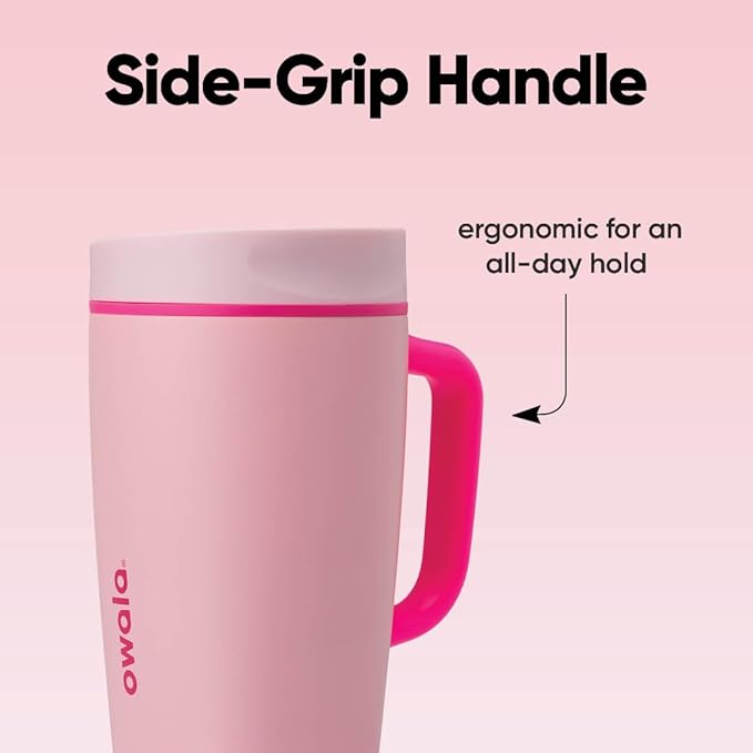 Owala SmoothSip Slider Stainless Steel Insulated Travel Mug with handle, 100% Leak Proof, For Hot and Cold Drinks, Travel Friendly with Sliding Lock Lid, 12oz, BPA Free, Leak Proof, Pucker Up