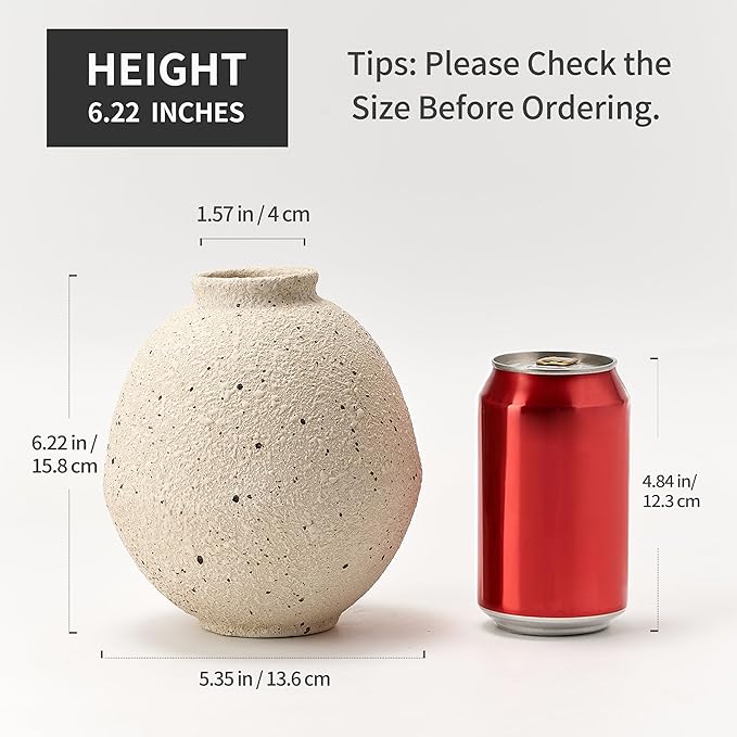 - Non-Slip Bottom Vase: This rustic vase for home decor measures 5.35" W x 6.22" H with a mouth diameter of 1.57", and is ideal for displaying artificial flowers, dried florals and fresh flowers. The bottom of the pottery vase is equipped with a non-slip pad, which prevents the flower vase from scratching the table or floor during movement during placement.