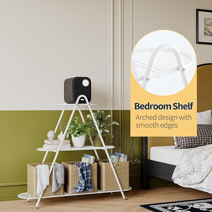 - 【Space-Saving & Aesthetic Design】 Three-tier design maximizes vertical space—ideal for plants, baskets, decor, and more, create your ideal living corner