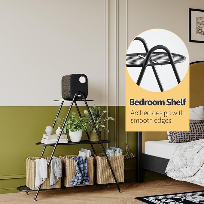 - 【Space-Saving & Aesthetic Design】 Three-tier design maximizes vertical space—ideal for plants, baskets, decor, and more, create your ideal living corner
