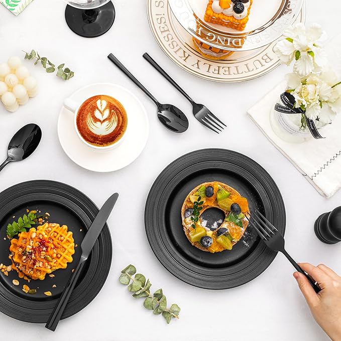 KINGSTONE Black Silverware Set, 60-Piece Forged Flatware Set Cutlery Set Premium Stainless Steel, Service for 12, for Kitchen, Home, Wedding, Party, Mirror Polished and Dishwasher Safe