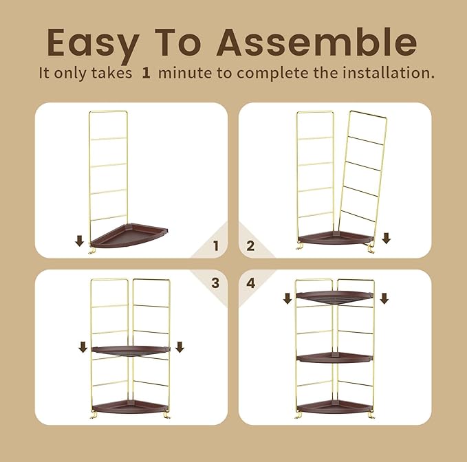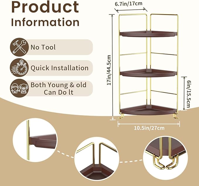 3-Tier Corner Bathroom Organizer Countertop for Storage,Counter Tray and Vanity Organizer,Plastic Counter Organizer for Kitchen, Bathroom, Dresser 10.6 inches (Gold Brown)