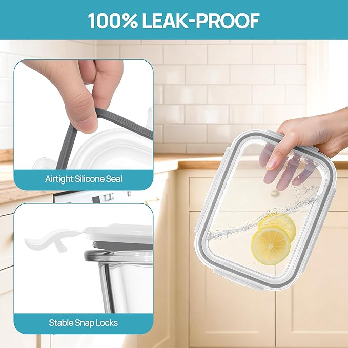 - 【Premium Glass & BPA Free】The glass containers are made of high quality borosilicate glass, making it safe for food storage. It is suitable for storing fruits, vegetables, salads, cereals, meals, meat, pasta, soups. It is a good choice for preparing meals at home, easy to get a healthy life.