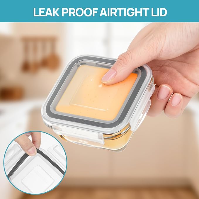 - 【AIR-TIGHT & LEAKPROOF】Each lid comes with innovated hinged-lids and makes the lid easy to flip open & shut, ensuring zero leaking or spilling, never endure spilled soup or sauce dirty your bag. The silicone seals can be removed to wash easily.