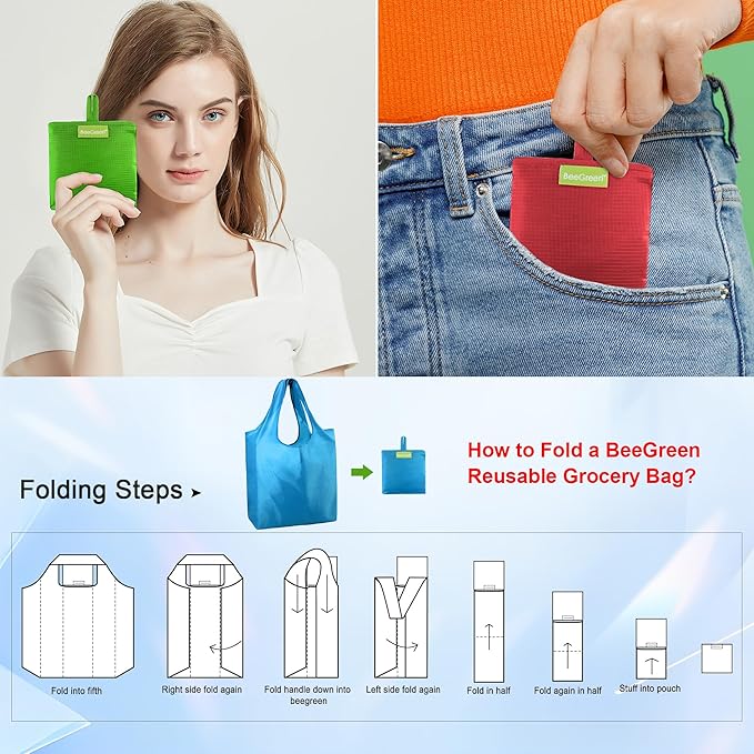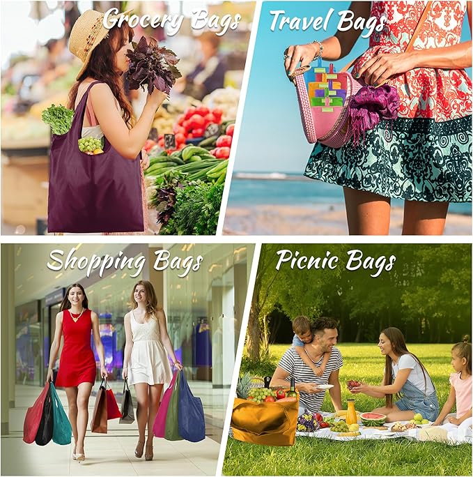 - Cute Colorful Reusable Grocery Bags (6 Designs) - Heavy-duty reusable grocery totes with 6 adorable Color! Effortlessly folds into its compact carry pouch – store it in purse, car, or pocket for space-saving portability. Built to last: washable, sturdy with strong handles for heavy groceries. Choose reusables & make an impact by reducing plastic waste in landfills and oceans! Get your essential grocery tote bag set.