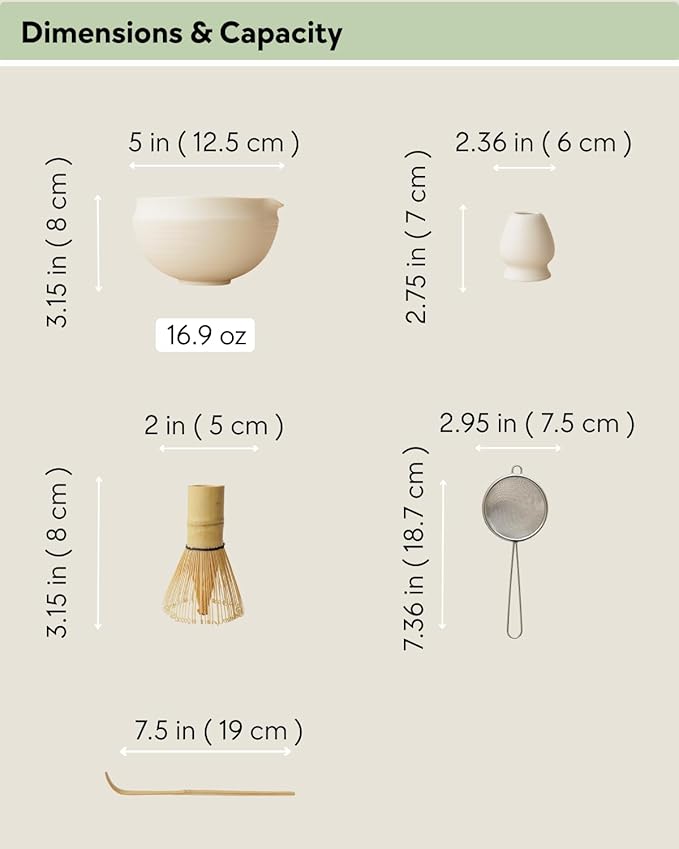 - Fine Stainless Steel Sifter & Bamboo Whisk – The upgraded dense mesh sifter creates extra-fine, fluffy powder. The handcrafted bamboo whisk naturally flexes to whip matcha into a smooth, foamy texture. Durable and versatile, they can also be used beyond matcha.