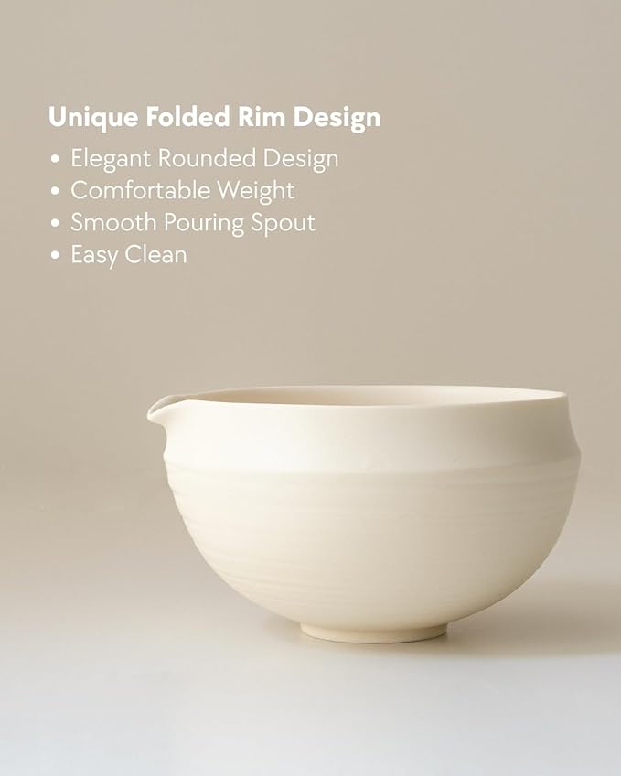 - Modern Folded Rim Bowl – Designed with a gracefully folded rim for a refined modern touch. Its rounded, elegant form with a comfortable size and moderate weight rests naturally in your hand, making it easy to hold and use. A clean spout design ensures smooth pouring without messy spills.