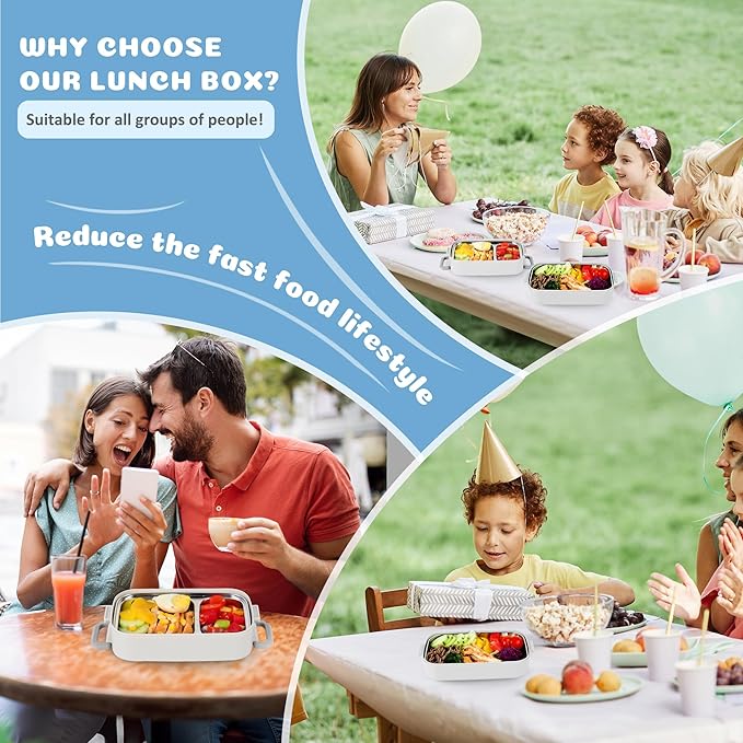 - 💕 Proof Technology: Our lunch box's lid has embedded silicone gasket and locking buckle, don't worry about your kid's food leak out or stale. Each compartment has a corresponding silicone gasket and all-round seal, This bento box container design with separate compartments and a tightly fitting leak-proof lid will make your meals are kept fresh and mess-free