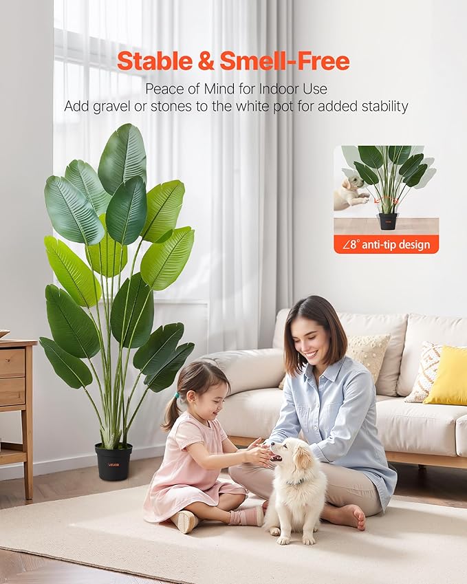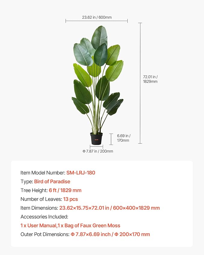VEVOR Artificial Bird of Paradise 6 ft Tall, Fake Tropical Plants with with 13 Trunks & White Pot, Faux Floor Silk Tree, Large Trees for Home Office Living Room Decor House Warming, Indoor Outdoor