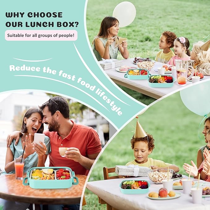 - 💕 Proof Technology: Our lunch box's lid has embedded silicone gasket and locking buckle, don't worry about your kid's food leak out or stale. Each compartment has a corresponding silicone gasket and all-round seal, This bento box container design with separate compartments and a tightly fitting leak-proof lid will make your meals are kept fresh and mess-free