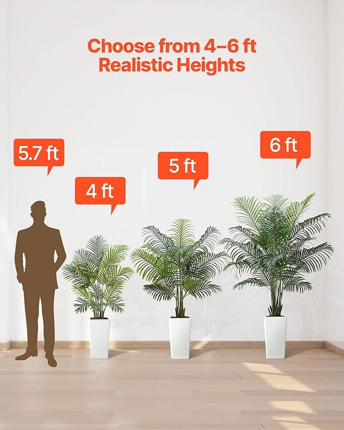 VEVOR Artificial Areca Palm Tree 5 ft, Fake Palm Tropical Plants with White Tall Planter, Faux Floor Silk Plant in Pot, Large Trees for Home Office Living Room Decor House Warming, Indoor Outdoor