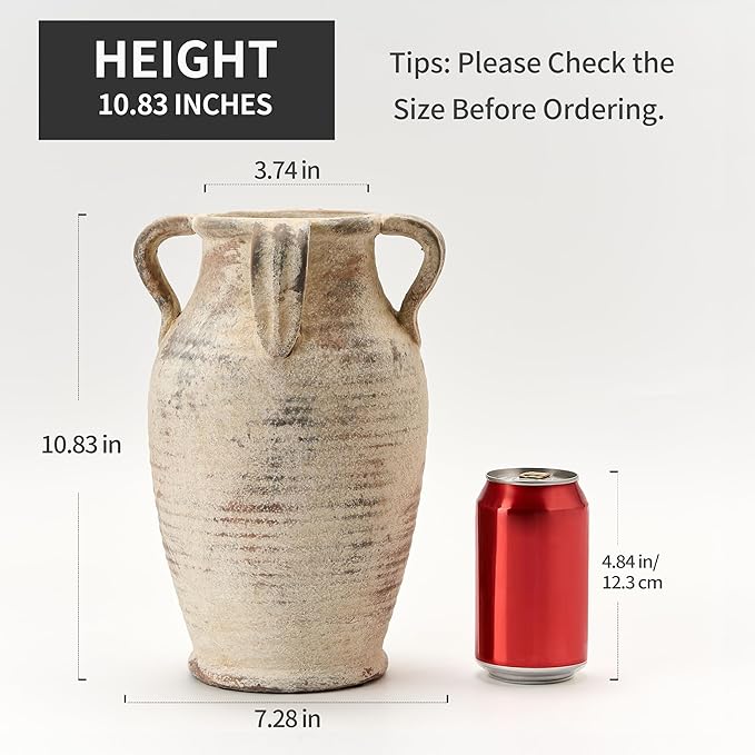 - 【Versatile Decor Piece】The rustic vase measures 10.83" height and 7.28" width with 3.74" opening. Perfect for fresh or dried flowers. Effortlessly elevate the aesthetics of any room -be it your living room, kitchen, bedroom,bathroom, or office-with our product. It seamlessly blends with various decor styles,including boho, rustic,modern farmhouse,and cottagecore.For an extra pop of color, simply add your favorite faux or fresh flowers.