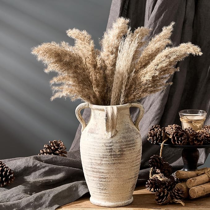 - 【Enjoy Time of Flower DIY】 Our handmade ceramic rustic vase is suitable for DIY flower arrangements, natural pampas grass, eucalyptus, dandelions, reeds, palm leaves, cattails and other green plants, fresh flowers,cherry blossoms, cut flowers, flower stems,botanical artificial flowers, fake flowers, rabbit tails, goat's hooves, feathers, etc.Unleash your creativity with this versatile pottery vase.