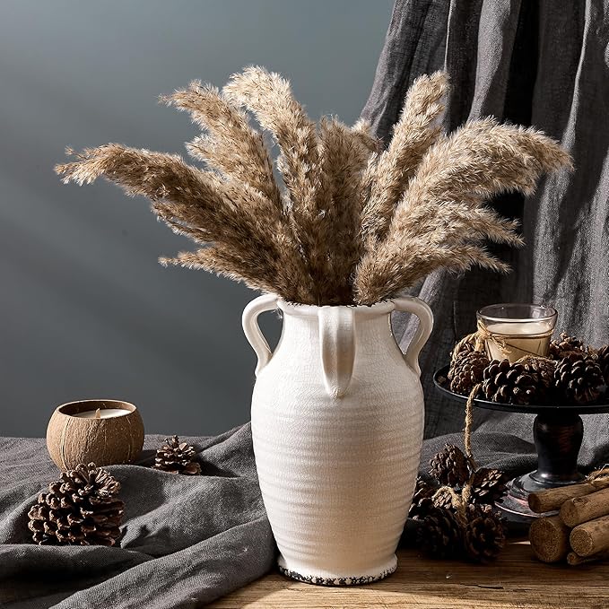 - 【Enjoy Time of Flower DIY】 Our handmade ceramic rustic vase is suitable for DIY flower arrangements, natural pampas grass, eucalyptus, dandelions, reeds, palm leaves, cattails and other green plants, fresh flowers,cherry blossoms, cut flowers, flower stems,botanical artificial flowers, fake flowers, rabbit tails, goat's hooves, feathers, etc.Unleash your creativity with this versatile pottery vase.