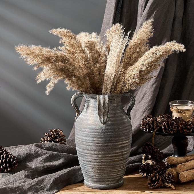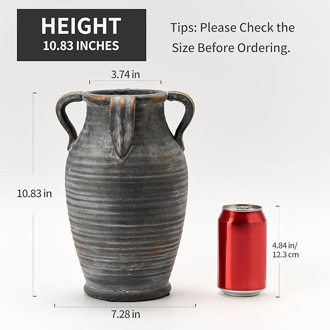 - 【Versatile Decor Piece】The rustic vase measures 10.83" height and 7.28" width with 3.74" opening. Perfect for fresh or dried flowers. Effortlessly elevate the aesthetics of any room -be it your living room, kitchen, bedroom,bathroom, or office-with our product. It seamlessly blends with various decor styles,including boho, rustic,modern farmhouse,and cottagecore.For an extra pop of color, simply add your favorite faux or fresh flowers.