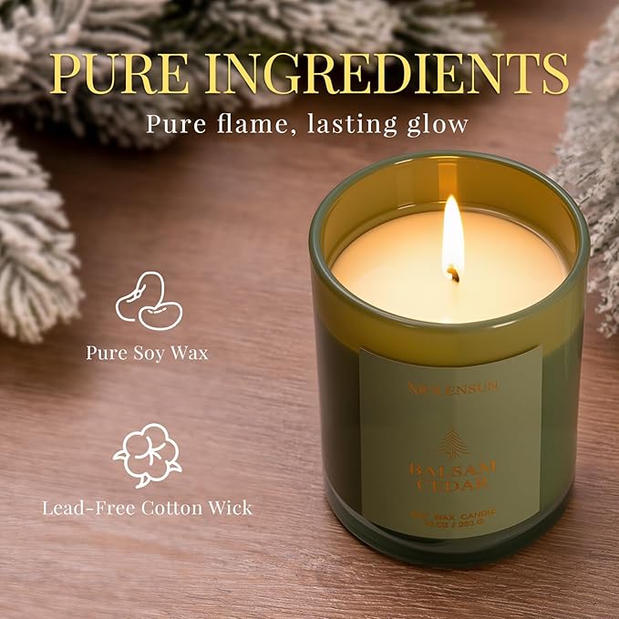Balsam Cedar Candle, 10oz Soy Scented Candle for Home, Christmas Birthday & Holiday Gifts for Women & Men, Long Lasting 50+ Hour Clean Non-Toxic Burn, Elegant Winter & Christmas Festive Home Decor