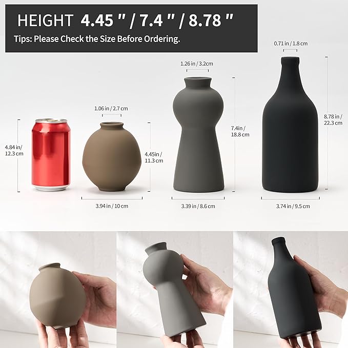 - [Handmade Decorative Vase]The vases have a Simple Nordic Matte Texture Surface Design, nice color that goes with any color decor, which are the compliment to all home decor. Made of high quality ceramic, which has a professional grade waterproof coating inside, allowing you to pour water, plant nutrient solution and other liquids without stress.