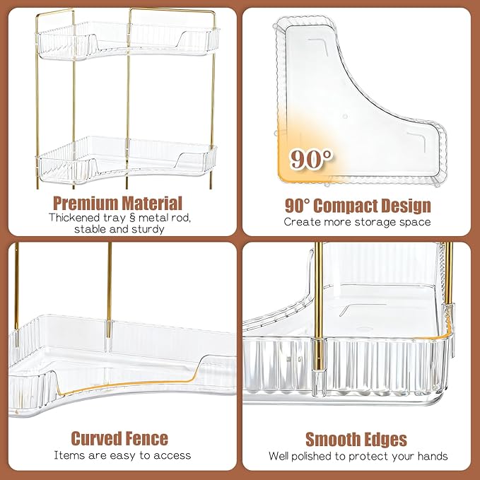 - Space-Saving Corner Design for Clutter-Free Surfaces: This 3-tier organizer features a smart 90-degree corner design, maximizing underused counter space in bathrooms, bedrooms, or kitchens. It neatly holds cosmetics, skincare, spices, or small essentials, keeping surfaces tidy while ensuring items are within easy reach—ideal for small spaces needing efficient storage