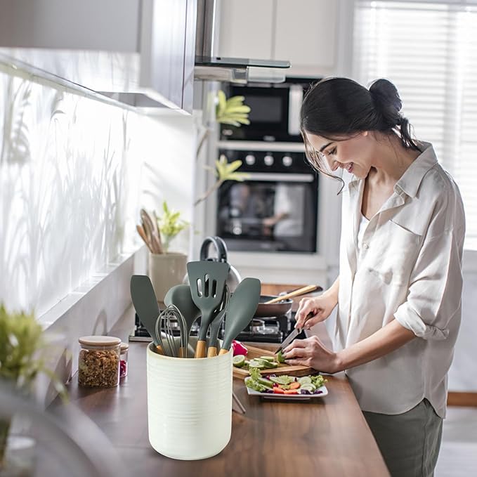 - Versatile Kitchen Decor: More than just storage, this ceramic utensil holder serves as attractive kitchen decor that complements various styles from modern farmhouse to traditional country designs