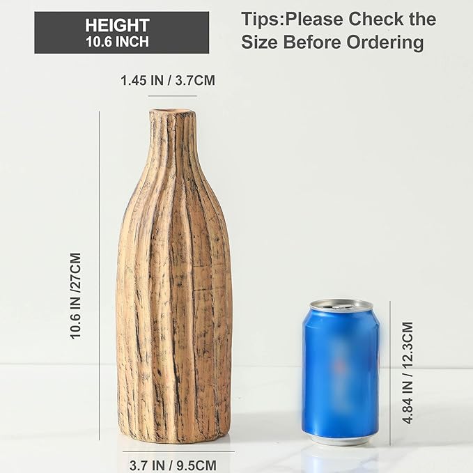 Natural Branch Design Ceramic Vase:Decorative Flower Vase for Modern Home Decor,Handmade Pottery Vase for Home Decor, Living Room,Kitchen,Office,Bedroom,CenterpieceTable Decorations-11inch Brown Color
