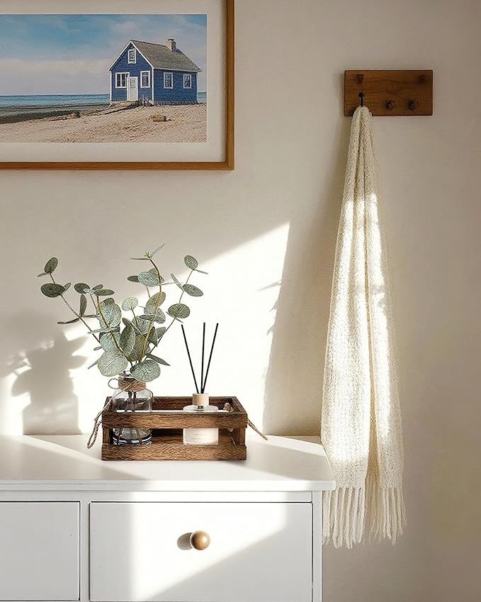 - 【Versatile Home & Bathroom Decor】This decorative wooden box doubles as a storage container basket for bathroom essentials or tabletop trinkets.Elevate your space with timeless elegance. This faux water arrangement in a small wooden basket complements farmhouse, modern, or coastal styles. Ideal as table decor, bathroom decor, or gift-ready accent.