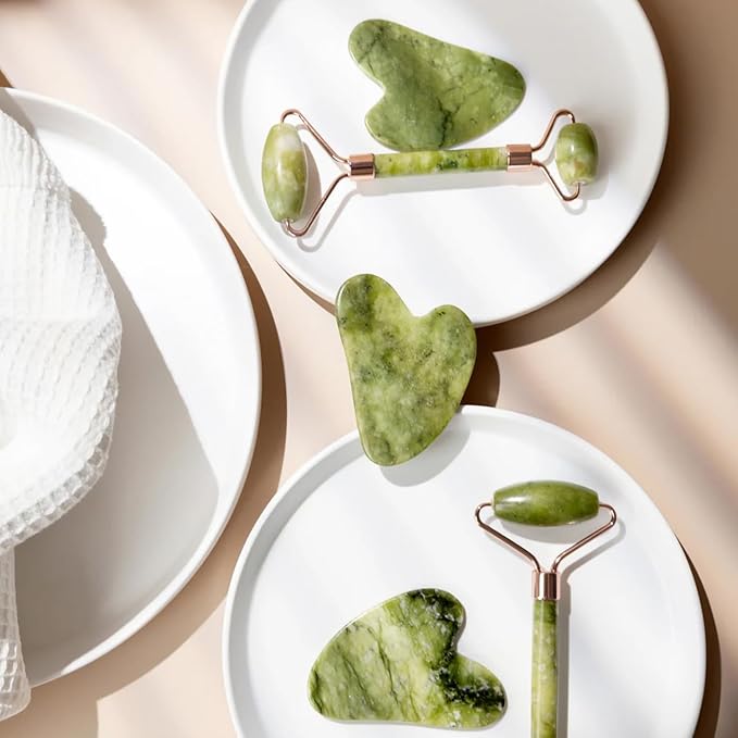 - Gua Sha Facial Tools with Natural Jade – Crafted from genuine jade stone, smooth and durable, designed to boost circulation, promote lymphatic drainage, and give skin a healthy glow.